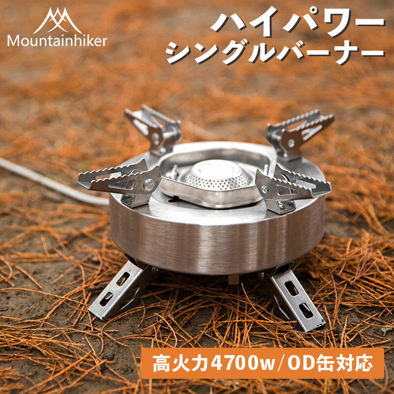 【 送料無料 】 ハイパワー シングルバナー【 Mountainhiker シリーズ 】 キャンプ 折りたたみ式 バーナー ガスバーナー OD缶対応 バーベキューコンロ ソロキャンプ 4700W 自由に火力調節 小型 便利 屋外 登山用 防災 コンパクト BBQ ソロ コンパクト キャンプ用品