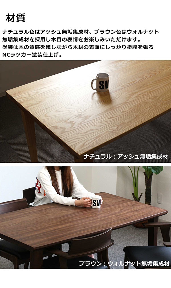 ダイニングテーブル 無垢 幅150cm 150x85 4人掛け用 アッシュ材 ウォルナット材 無垢集成材 食卓テーブル 木目 シンプル モダン ナチュラル ブラウン