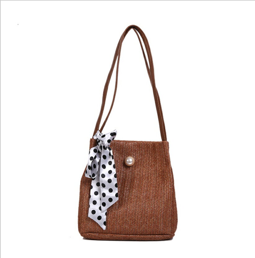 かごバッグ 麦わらバッグ 軽量 斜め掛け 肩掛け 草編みバッグ 春 夏 旅行 可愛い おしゃれ 大容量 水玉リボン 真珠