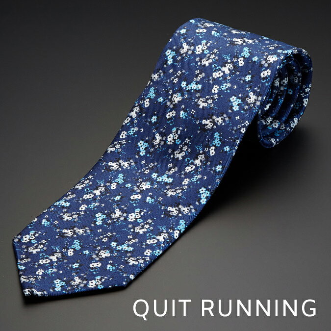 セール SALE イタリア製シルクネクタイ Quit Running ピュアシルク100% MADE IN ITALY フローラル パターン INK BLUE インクブルー 紺 navy 英国ブランド 男性 ギフト 祝い 卒業式 スーツ フォーマル トラッド