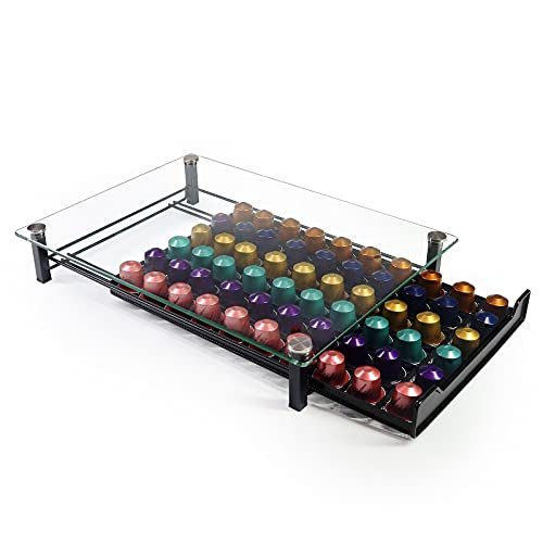 RECAPS コーヒーポッドホルダー 収納引き出し ネスプレッソコーヒーカプセル対応 キッチンオーガナイザー ブラック Glass and Iron