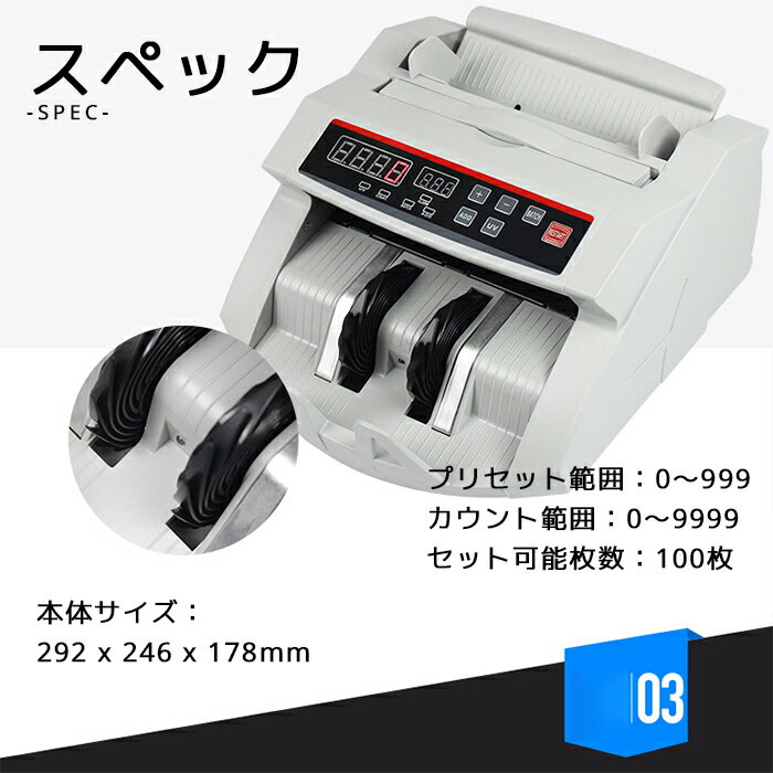 商品詳細 特徴 持ち運びも簡単な、ポータブルマネーカウンター シンプルかつスピーディーで使い勝手も抜群! スペック ●本体サイズ:約292 x 246 x 178mm ●重量:約5.3kg ●紙幣セット及び出力枚数:100枚 ●カウント範囲:0~9999 ●プリセット範囲:0~999 ●その他:収納タイプの持ちて付き 生産国 中国 ご注意点 ※製品サイズは、計測方法によりサイズ感が異なる場合がございます。