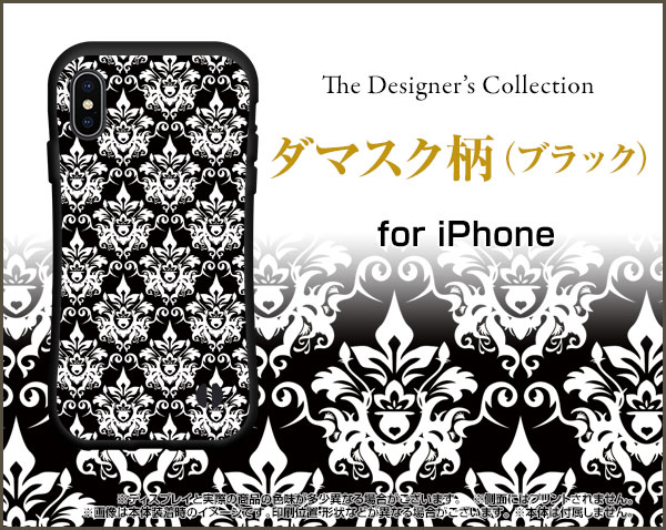 3D保護ガラスフィルム付 iPhone XRアイフォン テンアールdocomo au SoftBank落としても割れにくい驚きの衝撃吸収力豊富なオリジナルデザイン耐衝撃 ハイブリッドケースダマスク柄(ブラック)