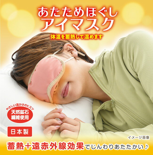 商品名 あたためほぐしアイマスク品番 ピンク i21001ネイビー i21002JAN ピンク 4562107314931ネイビー 4562107314948商品サイズ(約) 20×10cm(ゴム部含まず)商品重量(約) 9g個装サイズ(約) 25×16×4cm材質 側地/ポリエステル100%中わた/ポリエステル100%(天然鉱石含有)パイピング部/ポリエステル65%、レーヨン35%ゴム部/ナイロン70%、ポリウレタン30%留め具/シリコン洗濯 手洗い可生産国 日本【代引きについて】こちらの商品は、代引きでの出荷は受け付けておりません。
