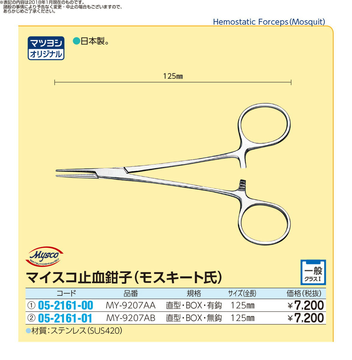 【病院専用商品】マツヨシ止血鉗子(モスキート)直・無 MY-9207AB(125MM)BOX品番 05-2161-011入り 一般 鋼製器具 鉗子 定価\8550 JAN ●商品説明 ●日本製。