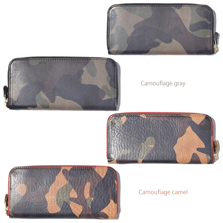 【イタリアンレザー/ラウンドウォレット(L)】財布 長財布 ロングウォレット ウォレット 革 本革 レディース メンズ 男女兼用 レザー 牛革 cow ユニセックス 日本製 La Perla Azzurra エルヴァケーロ 迷彩 カモフラージュ ジップ ジッパー ラウンドファスナー