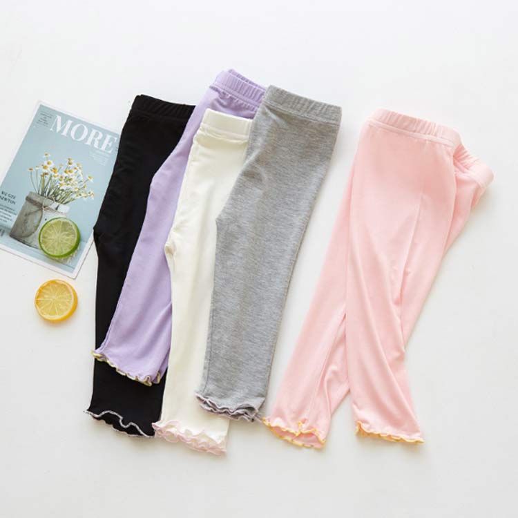 7分丈 レギンス キッズ ボトムス 女の子 スパッツ ベビー レギンスパンツ パンツ 子供服 七分丈 薄手 配色 メロウフリル モダール ストレッチ性 無地 ジュニア 可愛い 夏 送料無料