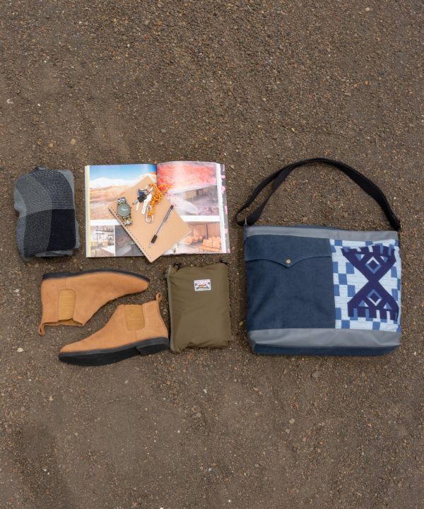 キリムモチーフとキルトの組み合わせのショルダーバッグ。