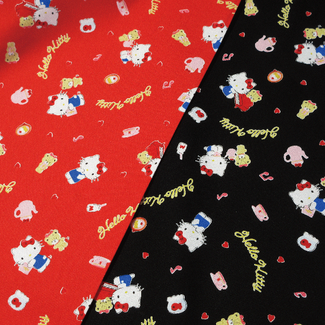 【オックス生地】ハローキティ≪2色≫【1m以上のご購入でメール便選択時に送料無料】【キャラクター生地 ブラック レッド キティ キャラクター サンリオ 女の子 コットン 日本製 入園入学 生地 布 レッスンバッグ ナップサック 巾着 ハンドメイド 手づくり】 詳しく見る