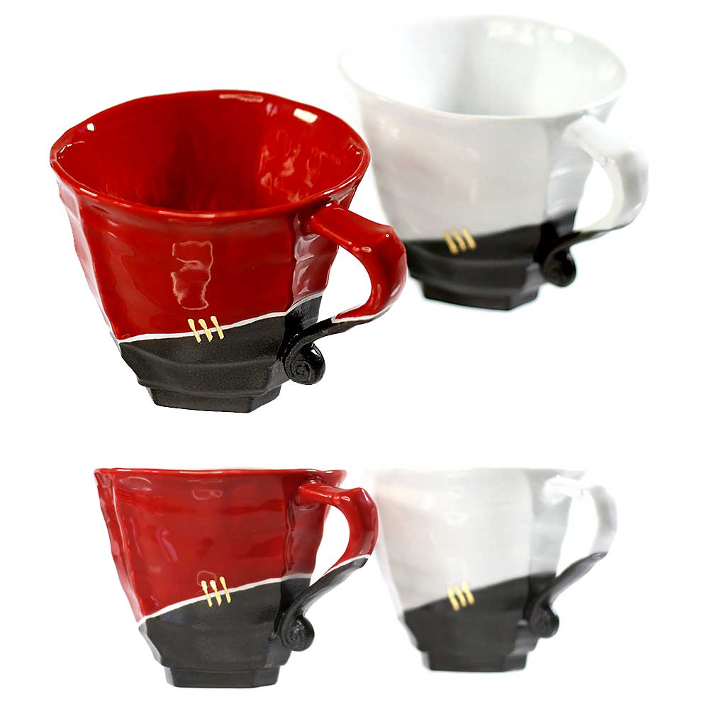 マグカップ コーヒー 器 有田焼 食器 ギフト お祝い 陶器 黒陶スクラッチマグカップ紅白セット 有田焼で宝寿窯という窯元製造の紅白マグカップをセット品にしてご紹介させて頂きます。