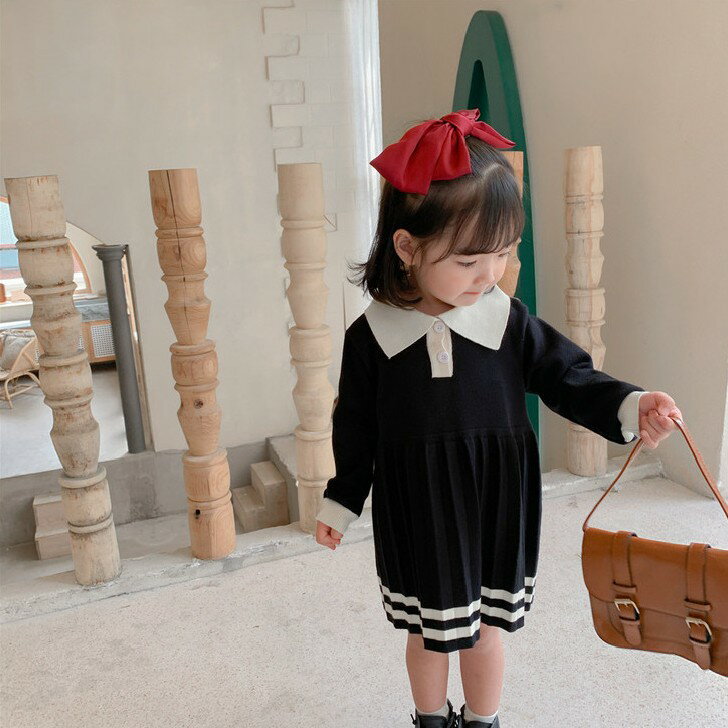 【予約販売 7-10営業日頃発送予定】キッズ ワンピース ニットワンピース ワンピ 長袖 子供服 女の子 おしゃれ 可愛い かわいい ナチュラル シンプル プリーツ プリーツスカート ニット 秋 秋冬 おでかけ 発表会 結婚式 七五三 入園式 卒園式